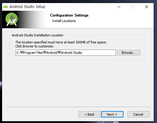 이제 안드로이드 앱 빌드를 위한 안드로이드 스튜디오를 설치합니다.