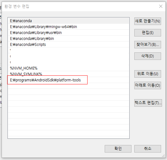 그리고 Path 경로에 sdk 지정한 경로 밑에 platfrom-tools를 등록해줍니다.