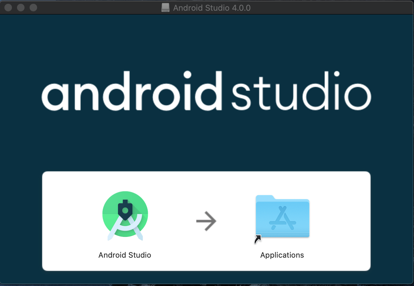 다운로드 후 실행하여 아래 화면이 뜨면 Application 방향으로 안드로이드 스튜디오 아이콘을 옮겨 설치합니다.