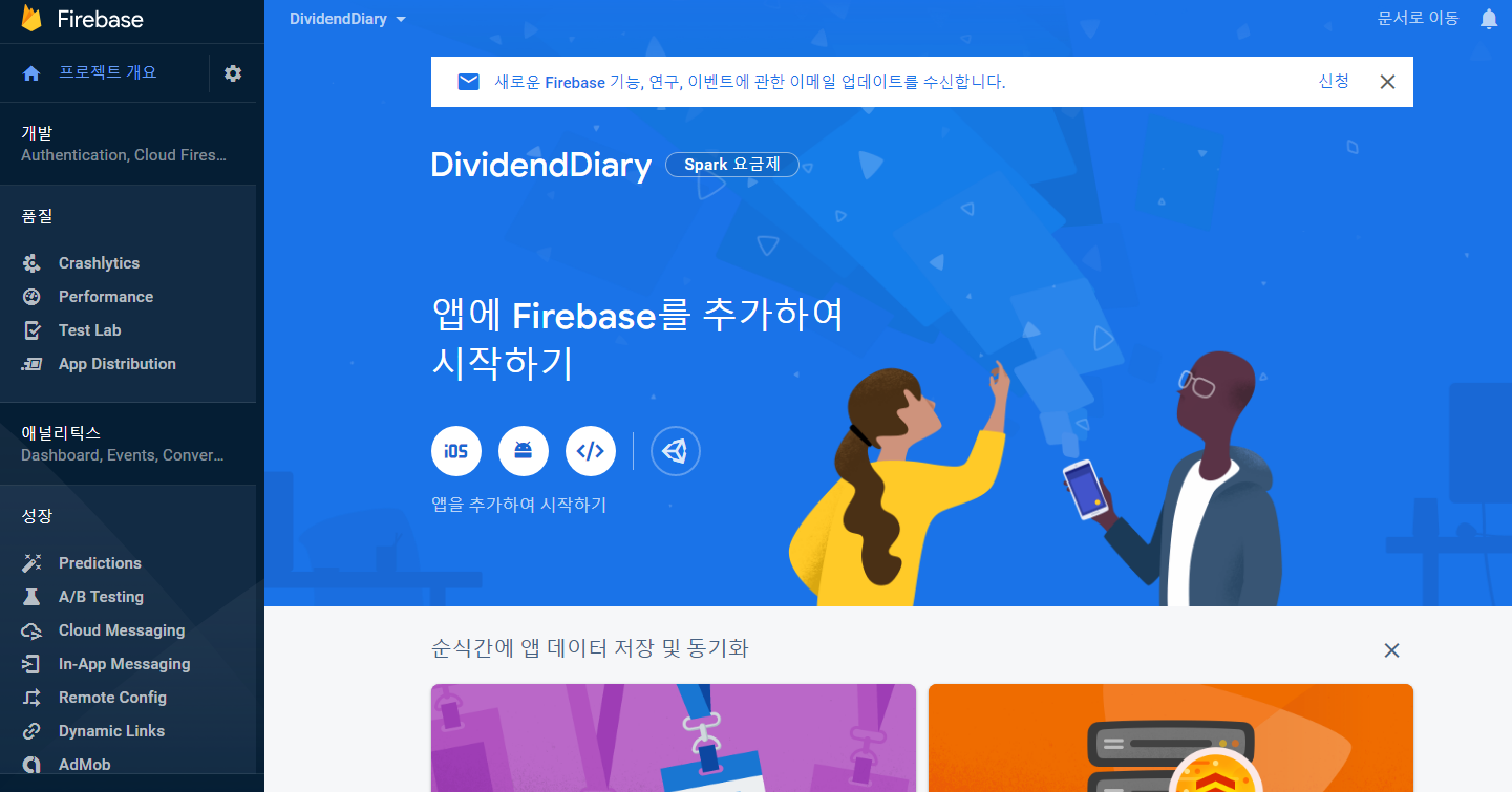 Firebase 홈페이지에 있는 순서대로 진행하면 됩니다.