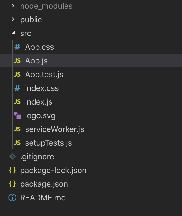 우선, 생성하기전 create-react-app 으로 생성한 기본구조를 알아보고 Components 폴더를 생성한 뒤 Components들을 생성하겠습니다.