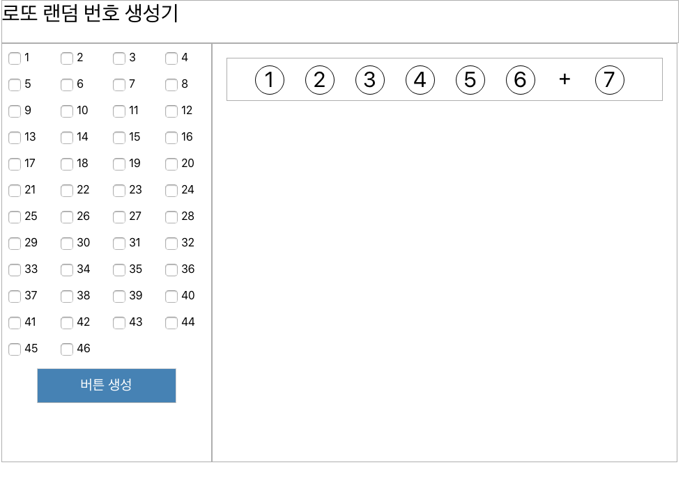 오른쪽에 랜덤으로 번호를 생성한 6가지를 번호를 표시해주는 영역을 만들어 보겠습니다.