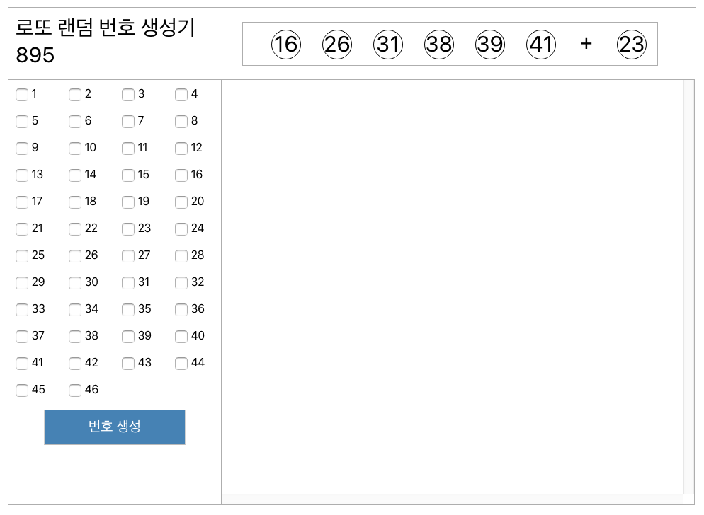 이렇게 처음 계획 했던 로또 번호 랜덤 생성 사이트 제작이 마무리 되었습니다.