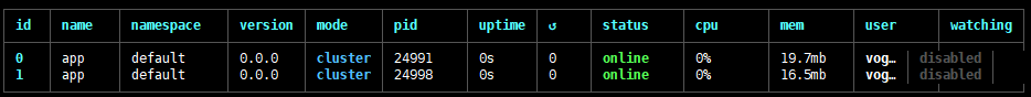app_name은 pm2의 구동된 프로세스 리스트를 확인하거나 처음 app.js를 실행할때 정의할 수 있습니다.