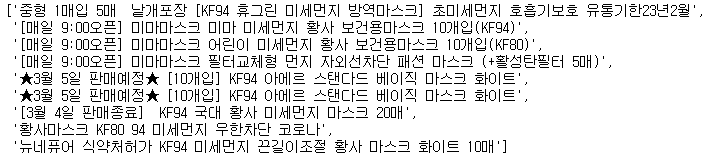 위에선 이미 태그를 분석하여 상품명이 있는 태그와 클래스를 알았기 때문에 한 번에 가져올 수 있었습니다.