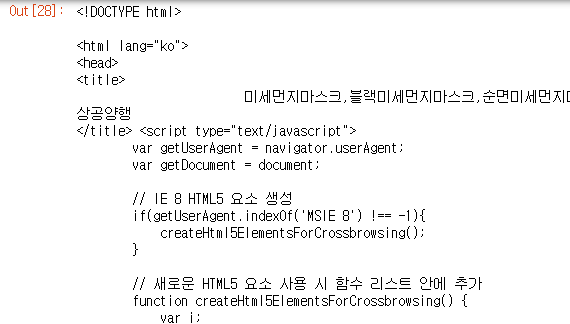 BeautifulSoup로 파싱 한 데이터를 출력해 보면 위와 같이 확인할 수 있습니다.