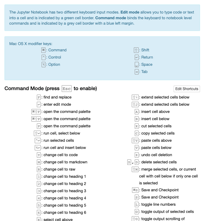 Command Mode (press Esc to enable)Edit Shortcuts
