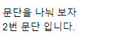 문단을 나눠 보자 <br> 2번 문단 입니다.