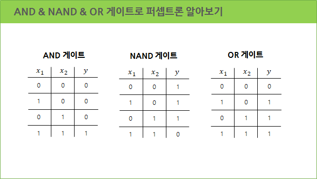 3. 퍼셉트론은 AND, OR 등 단순한 논리회로로 표현하며 이해할 수 있습니다.