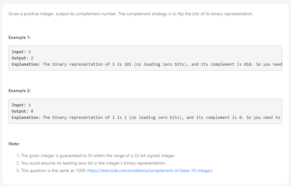 양의 정수가 주어지고 출력은 주어진 수의 complement number로 출력합니다.